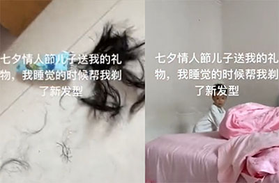 男孩趁媽媽熟睡,竟然給媽媽剃了個(gè)發(fā)型