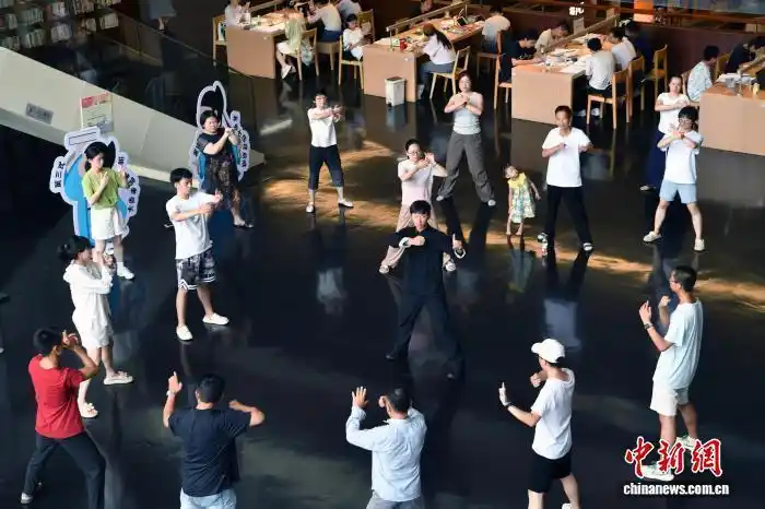 資料圖:四川成都,武術(shù)老師教授讀者八段錦動作。中新社記者 王磊 攝