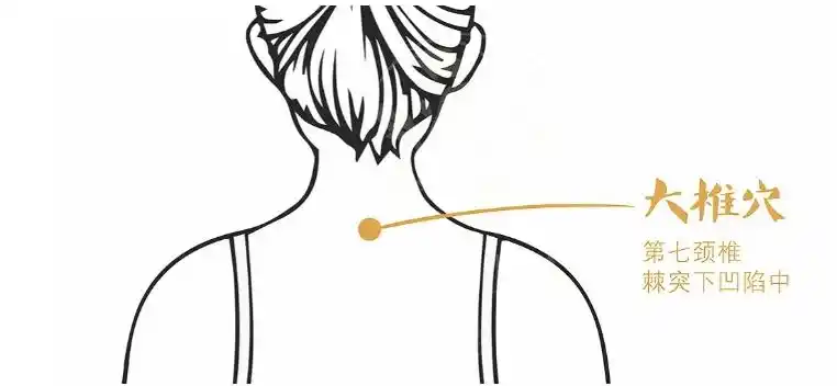 大椎穴,位于頸后最高骨下方。用艾灸來灸此穴10分鐘,能振奮陽氣,抵御外寒。