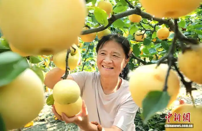 資料圖:圖為村民在采摘黃金梨。李新義 攝