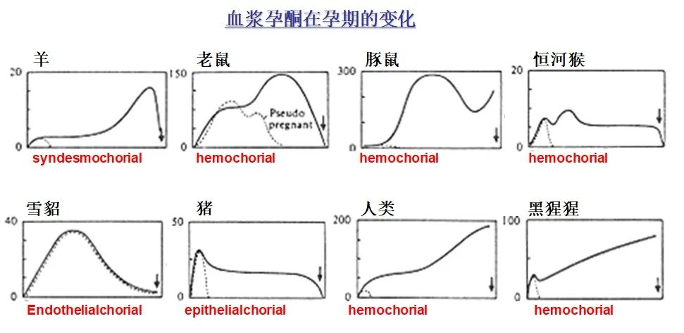在新生兒要出生前大約一周左右,肺內(nèi)分泌的液體開始減少。至于胎兒是怎么知道自己該什么時(shí)候出生,這是一個(gè)很奇妙且沒有弄明白的事情。大多數(shù)動物在分娩前母體內(nèi)孕酮(維持子宮靜息的激素)會下降,孕酮水平下降伴隨著子宮收縮發(fā)生,但人類卻不是這樣(圖1)。