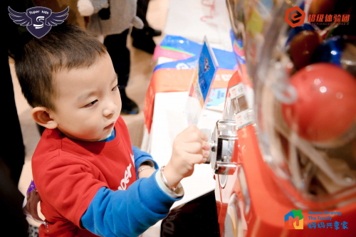 中場(chǎng)休息時(shí)間,孩子們?cè)谔貏e設(shè)置的游戲區(qū)體驗(yàn)游戲:趣味投籃、棒球投球、飛行棋、紀(jì)念拍照,打卡5個(gè)游戲還可以額外兌換一個(gè)禮包。