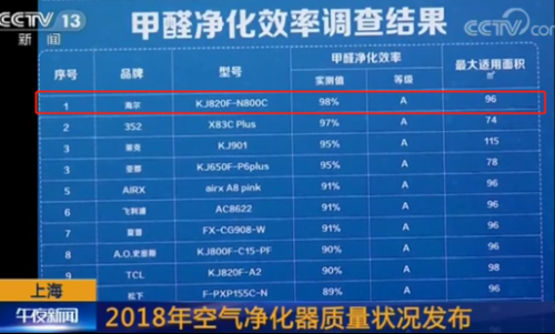 應(yīng)上海市市場(chǎng)監(jiān)管部門(mén)的要求,上海市環(huán)境保護(hù)工業(yè)行業(yè)協(xié)會(huì)及協(xié)會(huì)空氣凈化設(shè)備專(zhuān)委會(huì)在2018年下旬展開(kāi)了“空氣凈化器產(chǎn)品除甲醛及顆粒物能力調(diào)查”工作,本次調(diào)查選取2018年1-8月市場(chǎng)銷(xiāo)量前20名的國(guó)內(nèi)外空氣凈化器品牌,每個(gè)品牌選取其去除甲醛性能最強(qiáng)的機(jī)型(甲醛潔凈空氣量最高且大于400m³/h),委托上海市計(jì)量測(cè)試技術(shù)研究所對(duì)最終選定的15件產(chǎn)品進(jìn)行了全方位的質(zhì)量評(píng)測(cè),其中,由零微科技推出的海爾除醛凈化器KJ820F-N800C以98%的甲醛凈化效率、755m³/h的甲醛CADR值、0.89的除醛系數(shù)、10.75 m³/(W·h) 甲醛凈化能效,遙遙領(lǐng)先其它產(chǎn)品,而這一結(jié)果,也得到了CCTV13的大力報(bào)道。不僅如此,該產(chǎn)品800m³/h的顆粒物CADR值,也展現(xiàn)出其除PM2.5的強(qiáng)大能力。