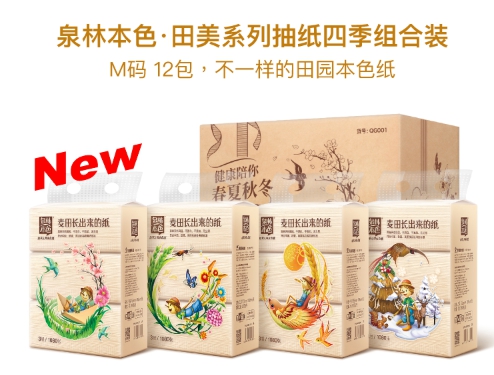 泉林本色“四季系列”新品從產(chǎn)品內(nèi)核到外包裝都極具“佳木斯”特色。內(nèi)含四題抽紙分別為“春夏秋冬”四款包裝,每一款包裝都在描繪佳木斯不同季節(jié)的美景,引人入勝。