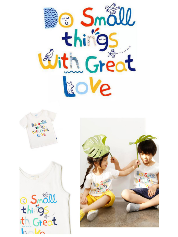 他們編號001的“小事T”,承載了他們的理念。Do Small Things With Great Love:柔軟,明亮,讓人心生對童年的美好向往。