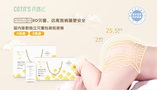 奧美生活此次參展,推出了極具品牌特色的“中國(guó)智造”系列產(chǎn)品。像安織愛乳絲親膚紙尿褲就被譽(yù)為行業(yè)首款生態(tài)抑菌紙尿褲,其開創(chuàng)性的利用純天然乳絲材質(zhì)做紙尿褲的面層。因乳絲呈弱酸性,可抑制尿液中的微生物繁殖,減低紙尿褲使用后發(fā)生的異味,進(jìn)而有助減少紅屁屁的發(fā)生。還有尚棉紀(jì)的EO滅菌系列產(chǎn)品,讓產(chǎn)品真正達(dá)到了0細(xì)菌狀態(tài)。這全源于流淌于奧美生活品牌血液里的品牌基因——醫(yī)護(hù)品質(zhì)。