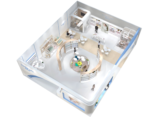 奧美生活展廳位于5.2號(hào)館C24-C25,斥資百萬重磅打造的180平C位展廳,所營(yíng)造出來的天然去雕飾、清新怡人的藍(lán)白色調(diào)完美契合純天然、安全及醫(yī)護(hù)的理念。