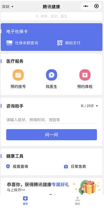 現(xiàn)在,經(jīng)過半年的探索,“騰訊健康”小程序及微信支付入口已面向深圳全量開放。這位助手到底有何神通,又是如何為深圳市民鞍前馬后效勞的?且聽我慢慢道來。