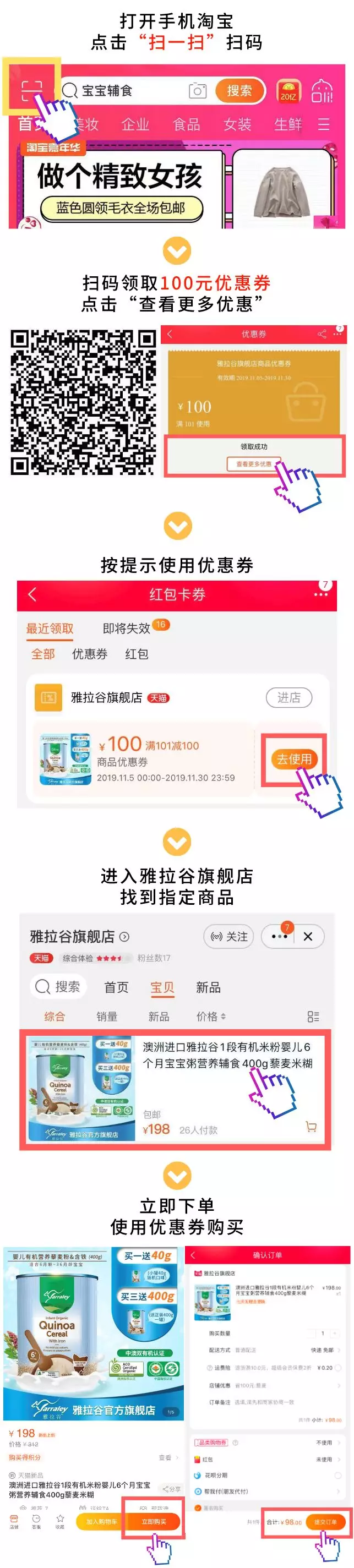 雙十一雖然已經(jīng)過去,但雅拉谷的優(yōu)惠卻沒有結(jié)束。雅拉谷天貓旗艦店還為粉絲們準(zhǔn)備了雙重福利。第一重福利,所有參與拼圖游戲并通關(guān)的粉絲可以根據(jù)游戲提示,參與“1元秒殺中澳雙有機(jī)雅拉谷藜麥粉”活動(dòng),限量200份,先到先得!第二重福利,100元超值優(yōu)惠券大放送,領(lǐng)取優(yōu)惠券購(gòu)買指定商品,立減100元!如此豐厚的優(yōu)惠,雅拉谷這次真的是“拼”了!