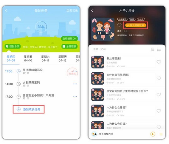 除此之外,此次故事機更新,還帶來了在阿爾法蛋其他產(chǎn)品上超受歡迎的“成長計劃”功能。爸爸媽媽們可以結合孩子的需要和興趣點,按照計劃時間點,推送內容給孩子。