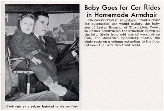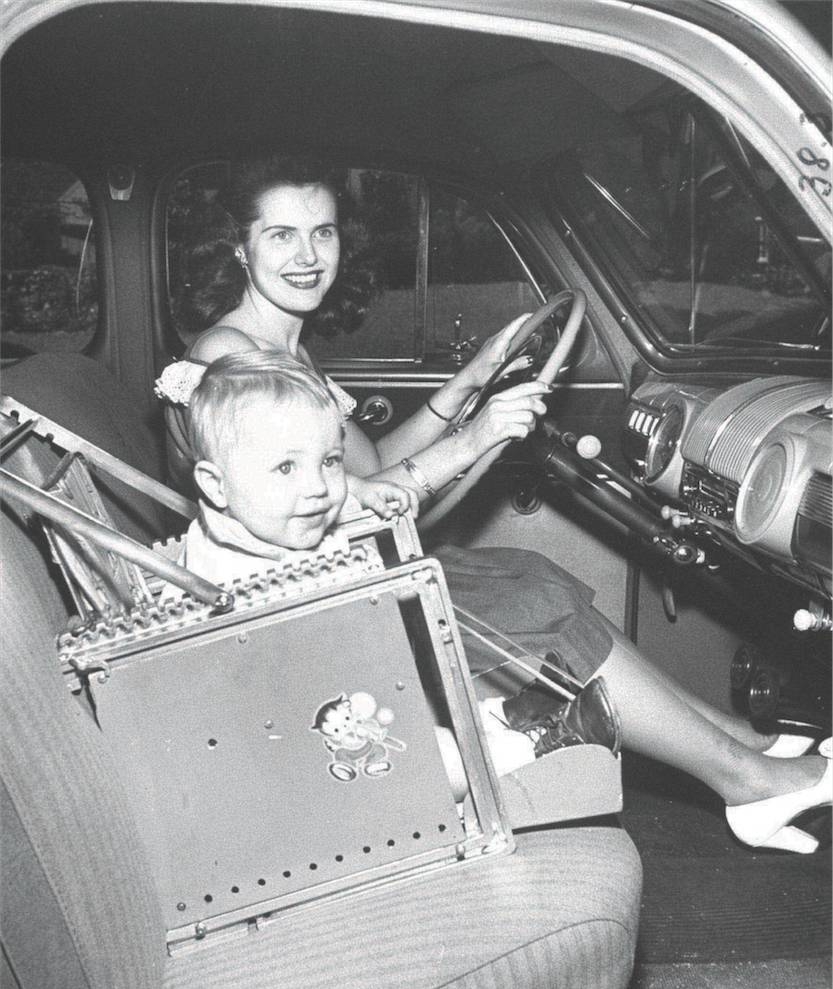 在之后的日子里,這種毫無安全性可言的“安全座椅”依然被使用一段時間。直到20世紀40年代,為了讓孩子們可以欣賞一下沿途的風景,“貼心”的美國父母將這個由帆布和金屬支架組成的座椅挪到了副駕駛位置。