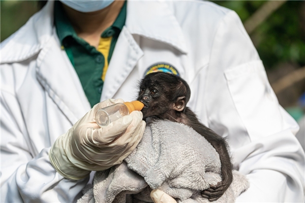 12月16日,在長(zhǎng)隆野生動(dòng)物世界“猿宇宙”猿猴特展活動(dòng)上,珍稀猿猴黑叢尾猴幼崽首次與游客見面。據(jù)悉,黑叢尾猴因數(shù)量稀少而瀕臨滅絕,于2008年被列入《世界自然保護(hù)聯(lián)盟》(IUCN)瀕危物種紅色名錄——極危(CR),長(zhǎng)隆靈長(zhǎng)類研究中心此次成功繁育極危猿猴,積累了豐富的保護(hù)與育幼經(jīng)驗(yàn)。
