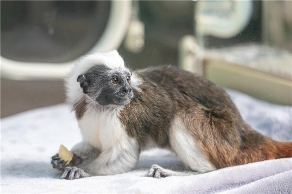 此外,記者還看到萌寶“棉頂狨”猴也是IUCN的極危動(dòng)物,是今年7月中旬出生強(qiáng)壯健康的雄性寶寶,據(jù)悉,“棉頂狨”猴非常容易生出雙胞胎,但這只新生的“棉頂狨”猴個(gè)頭太大而只是單胎。