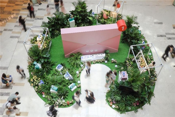 活動期間,展臺正中巨大的粉色信封是拍照打卡地,中間印刻的520無不彰顯著這封情書的浪漫,而右上角的未讀符號,似乎在等待媽媽們將它開啟。