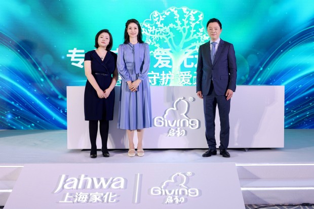 上海家化首席市場官陳靜、啟初品牌代言人李娜、上海家化董事長兼首席執(zhí)行官潘秋生