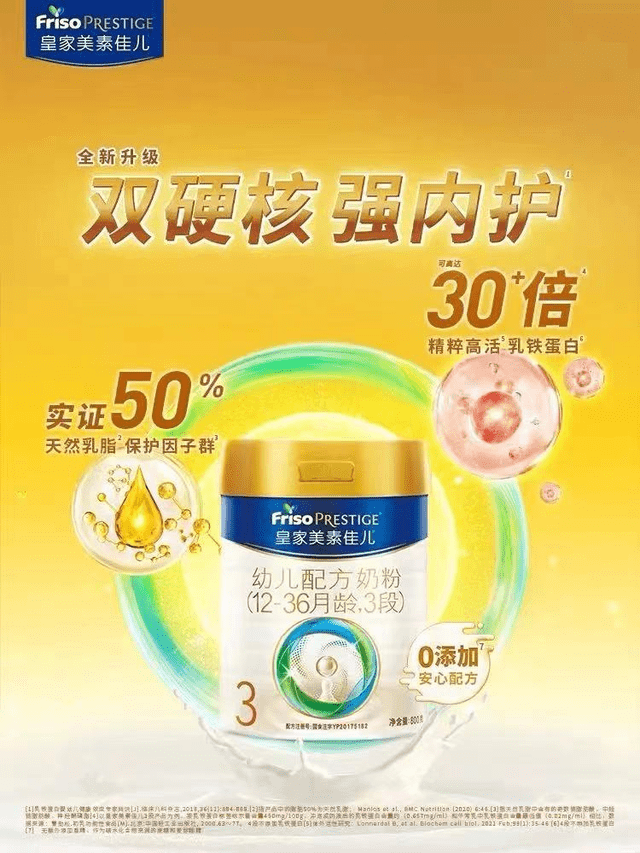 據(jù)了解,今年菲仕蘭旗下皇家美素佳兒全新升級并完成二次配方注冊,其含有的天然乳脂和乳鐵蛋白這兩個硬核成分,能為寶寶帶來超強內(nèi)護:實證50%天然乳脂保護因子群,含近40種天然乳脂保護因子,支持內(nèi)在環(huán)境調(diào)節(jié)和細胞調(diào)節(jié);可高達30+倍精粹高活乳鐵蛋白,充分保留了乳鐵蛋白的活性,菲仕蘭自家乳鐵蛋白原料鐵結(jié)合率達到80%以上;此外,新國標(biāo)配方0添加香蘭素,給寶寶帶來天然營養(yǎng)。
