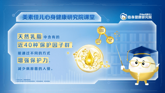 來自WHO權(quán)威專家George P. Chrousos教授揭示了天然乳脂中所含營養(yǎng)與免疫力之間的關(guān)聯(lián)。他表示,天然乳脂是增強免疫力、促進組織器官發(fā)育的關(guān)鍵營養(yǎng)素,除了能有效支持腸道屏障功能,調(diào)節(jié)脂質(zhì)代謝,還能與母乳中豐富的乳鐵蛋白與免疫球蛋白共同作用,調(diào)節(jié)炎癥反應(yīng),助力免疫功能正常發(fā)育。同時大腦與免疫系統(tǒng)之間存在動態(tài)交流,在機體遇到免疫反應(yīng)時,所釋放的炎癥性細胞因子可以進入大腦改變神經(jīng)遞質(zhì)功能,導(dǎo)致心身健康問題。因此,確保給予充足的母乳喂養(yǎng)尤為重要。母乳富含的天然乳脂、乳鐵蛋白、免疫球蛋白以及母乳低聚糖,例如NvHMO (4’-GL)這種母乳低聚糖結(jié)構(gòu),都是支持免疫力增強幫助組織器官正常發(fā)育的關(guān)鍵營養(yǎng)素,不僅能有效的對抗外界致病菌,同時能幫助減少體內(nèi)炎癥細胞因子的產(chǎn)生,從而減少病痛、悲傷消極情緒的產(chǎn)生,為寶寶的心身健康成長奠定堅實的基礎(chǔ)。