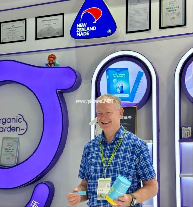 (圖為:John Dawson-新西蘭領(lǐng)先生物科技QUANTEC集團(tuán)的CEO,為奧己乳鐵蛋白展臺 )