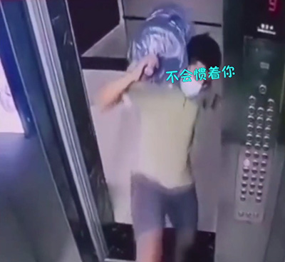 電梯在到達(dá)九樓后門就打開了,女子先行一步走了出去,男子便跟在后面??删驮谀凶觿倓傔~腳準(zhǔn)備走出電梯的時(shí)候,她旁邊的小男孩突然間惡搞他,故意伸出腳拌了他一下。