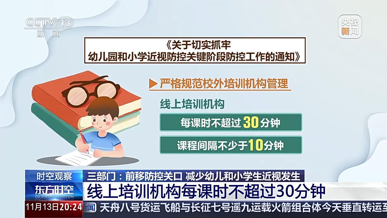 嚴格規(guī)范校外培訓(xùn)機構(gòu)管理,線上培訓(xùn)機構(gòu)每課時不超過30分鐘,課程間隔不少于10分鐘。