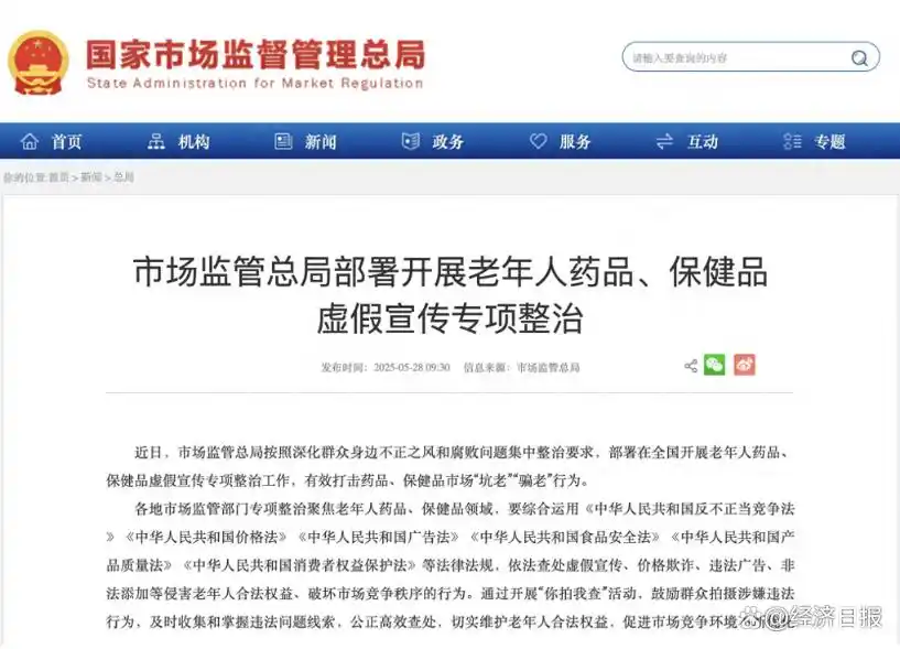 近日,市場監(jiān)管總局在全國部署開展老年人藥品、保健品虛假宣傳專項(xiàng)整治工作,向社會(huì)傳遞守護(hù)老年人生命健康與財(cái)產(chǎn)安全的決心。