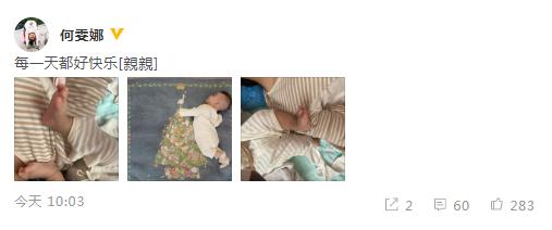 5月27日,何雯娜在微博曬出三張女兒的睡姿和可愛的小腳丫,幸福發(fā)文:“每一天都好快樂”,并配上親親的表情。照片中何雯娜的女兒與媽媽穿著親子服躺在床上,寶貝露出軟萌的腳丫,還躺在圣誕樹背景的床單旁,宛若小天使,畫面溫馨十足。