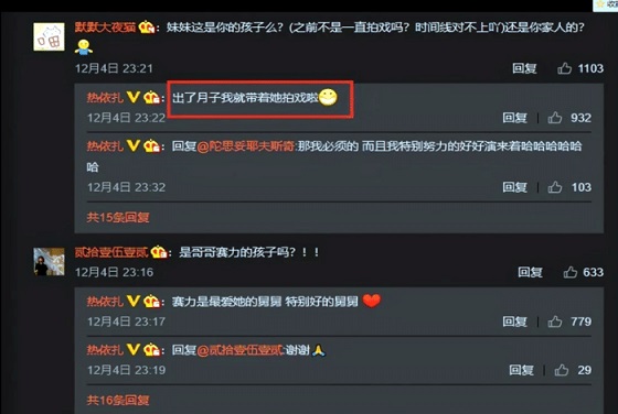 在評論區(qū),很多粉絲紛紛留言祝福。熱依扎也很回復(fù)熱心網(wǎng)友的祝福,其中有一句驕傲又略帶一絲無奈的話:“出了月子我就帶著她(女兒)拍戲了。”