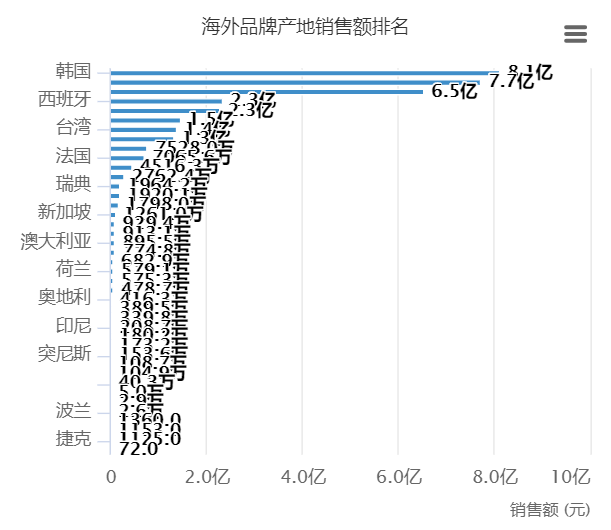 海外產(chǎn)地頭部效應明顯,韓國占大頭