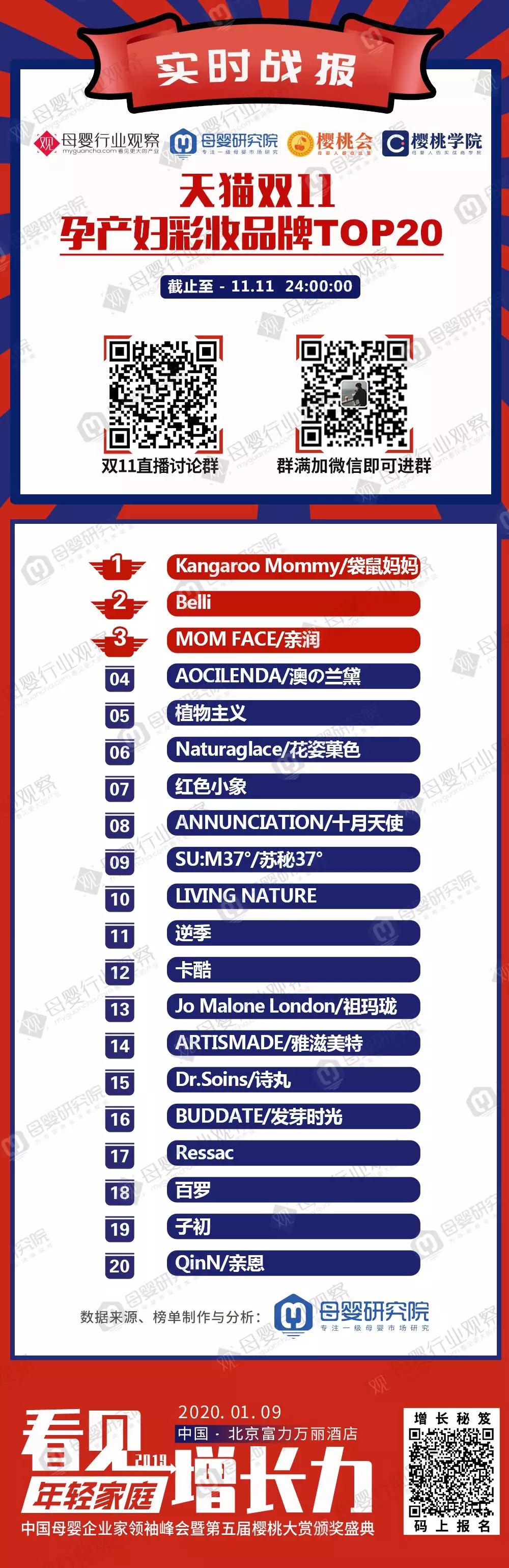 美媽經(jīng)濟(jì)崛起,天貓雙十一孕產(chǎn)婦彩妝TOP20最新戰(zhàn)績(jī)曝光!